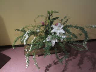 随所に生花が飾られている。
