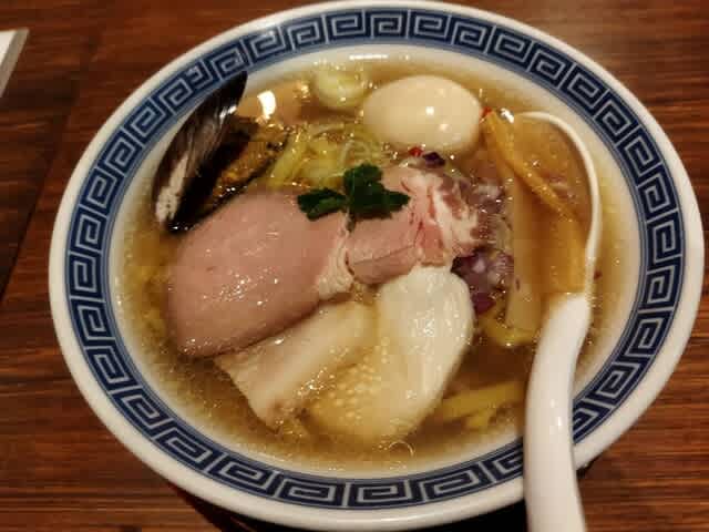 貝だし塩そば(熟玉のせ)950円を券売機で購入。
