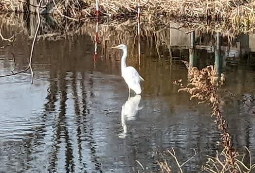 シラサギだろうか、白い鳥が一羽。