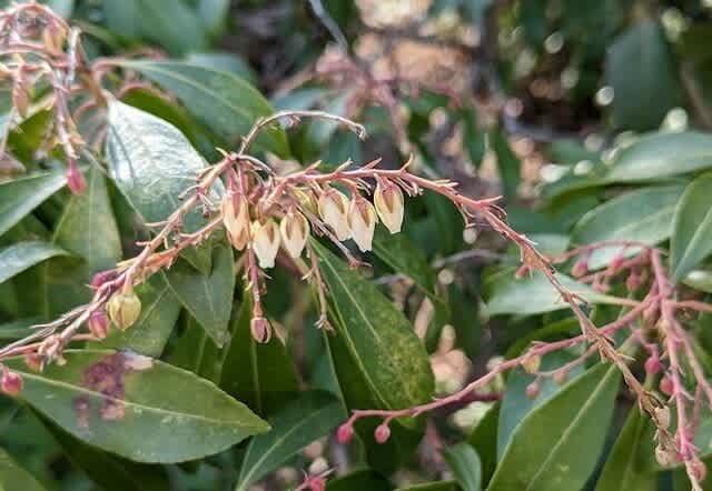 蕾ばかりの中に花を付けたアセビ発見。