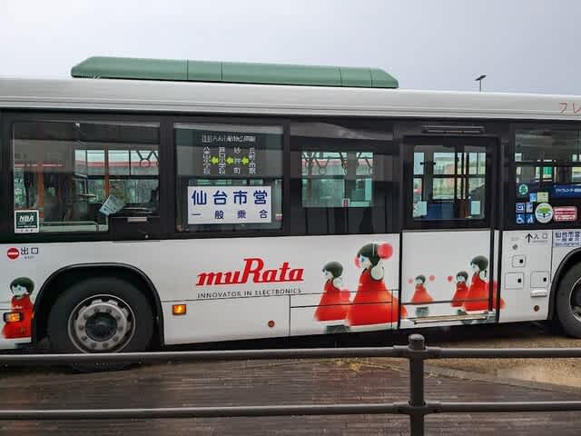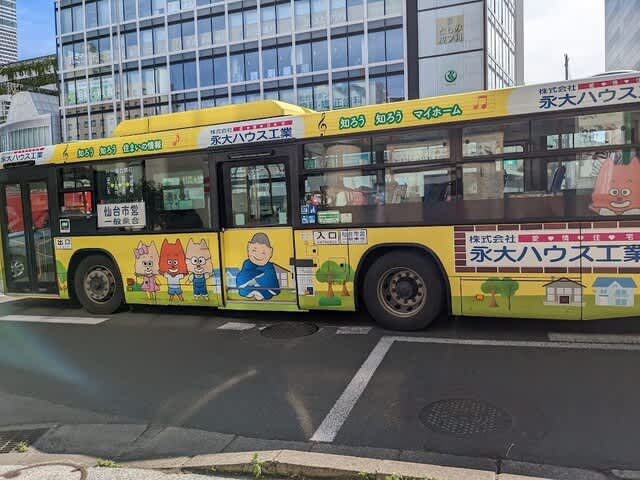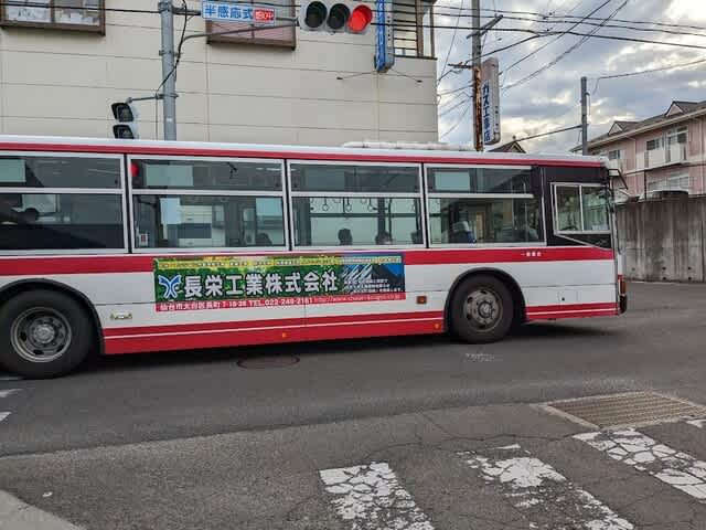 宮城交通のバスは全面的なラッピングじゃないのに気づく。